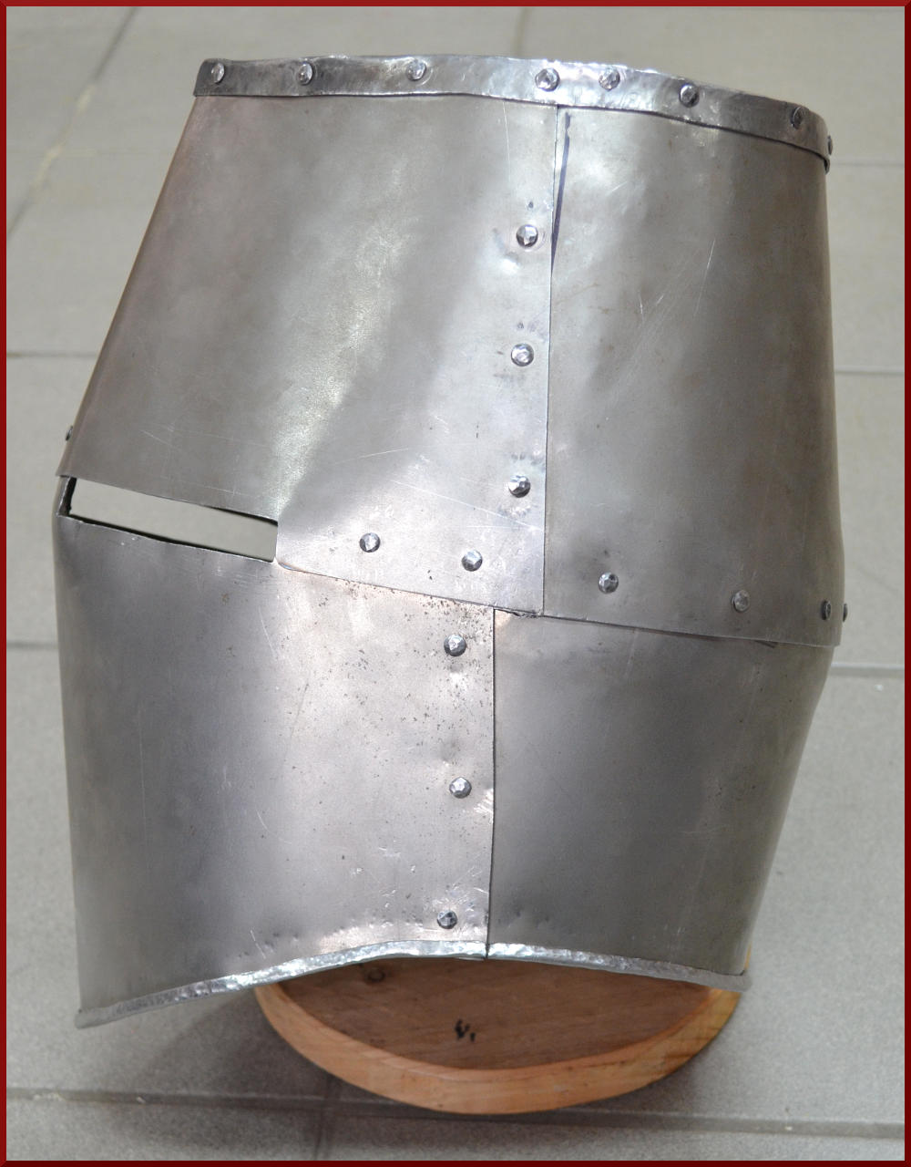 Der Helm bestehen aus 1 mm Blech. Der Helm wurde mit 4 mm Eisenvollnieten vernietet.