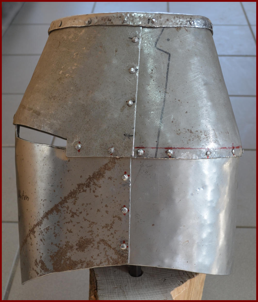 Der Helm bestehen aus 2 mm Blech. Der Helm wurde mit 4 mm Eisenvollnieten vernietet.